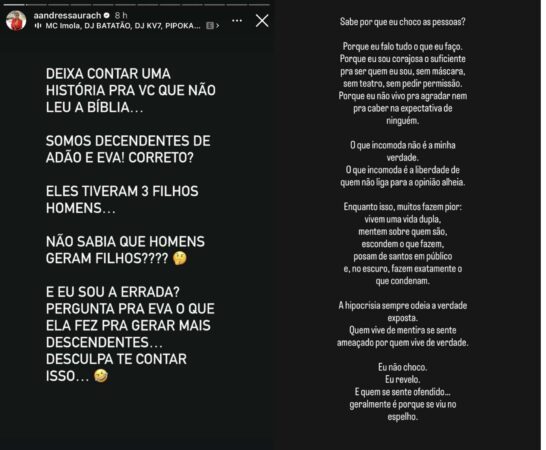 A influenciadora Andressa Urach utilizou suas plataformas digitais para se posicionar diante das reações negativas que surgiram após o anúncio de uma colaboração em material de cunho adulto com seu próprio filho. A declaração surge em meio a um debate público sobre os limites e a natureza do conteúdo que a celebridade tem produzido.