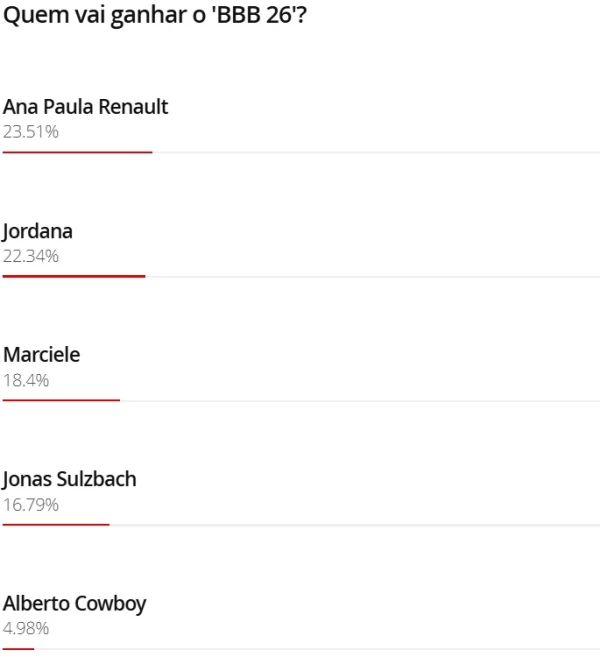 BBB26: Enquete Parcial Revela Disputa Acirrada Pelo Favoritismo Após Formação de Paredão Inesperado