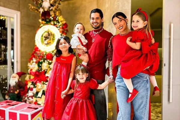 Zé Felipe, por sua vez, registrou a celebração com a companheira, a influenciadora Virginia Fonseca, e os três filhos: Maria Alice, Maria Flor e José Leonardo. O cantor expressou seu sentimento: “Meu maior presente é estar com vocês. Feliz Natal”.