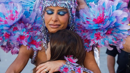 Imagens que circulam nas redes sociais registram o instante em que Sabrina Sato, com o semblante carregado, é abraçada e confortada por membros da diretoria e componentes da Gaviões. A cena evidencia o vínculo afetivo entre a artista e a escola de samba, que a tem como um de seus maiores símbolos.