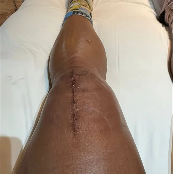 Gracyanne Barbosa, com perna imobilizada, prestigia minidesfile da União da Ilha