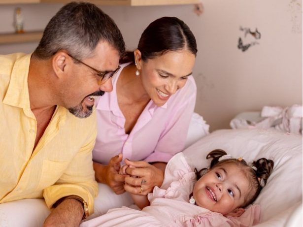 Juliano Cazarré, pai de seis filhos – Vicente (15), Inácio (12), Gaspar (6), Maria Madalena (4), Estevão (1) e a pequena Maria Guilhermina –, também compartilhou detalhes sobre a dinâmica familiar e a relação dos irmãos com a caçula. Ele destacou o carinho e a proximidade que os irmãos demonstram por Maria Guilhermina, especialmente o pequeno Estevão, que adora ficar em sua companhia. “É curioso notar a reação da Guilhermina com os irmãos porque quando entra uma criança no quarto, você vê tudo ali, ela olha para ver quem é e fica mais com o irmão pequeno”, comentou.