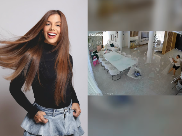 A influenciadora Evelyn Regly viveu momentos de apreensão em sua residência nesta terça-feira (25/11). Um vídeo compartilhado nas redes sociais pela própria Evelyn mostra o instante em que uma peça de vidro se desprende da parte superior da casa e se estilhaça violentamente no chão da sala. Felizmente, a ocorrência não resultou em feridos.