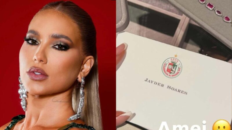 Virginia Fonseca celebra primeiro ensaio na Grande Rio com joia presenteada pelo presidente Jayder Soares